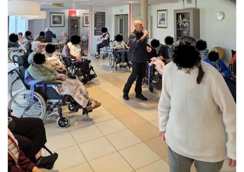 L’artiste a su créer une ambiance chaleureuse et feutrée, portée par des mélodies entraînantes. Les résidents ont apprécié ce moment musical, certains fredonnant les airs connus, d’autres se laissant porter jusqu’à esquisser quelques pas de danse.