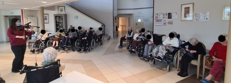 Tous les derniers vendredis du mois, l’après-midi est dédié à la fête des anniversaires. Ce vendredi 31 janvier, la thématique autour de la musique du monde a rythmé ce beau moment de partage. Cécile, violoniste, a accompagné les résidents pour une après-midi festive mêlant musique, chants et danse. Les résidents nés en janvier ont ensuite soufflé leurs bougies autour d’un framboisier, dans une ambiance conviviale et joyeuse. Un très beau moment de partage apprécié de tous. 🎶🎂