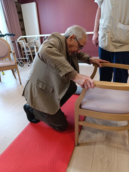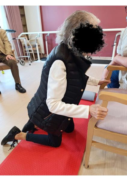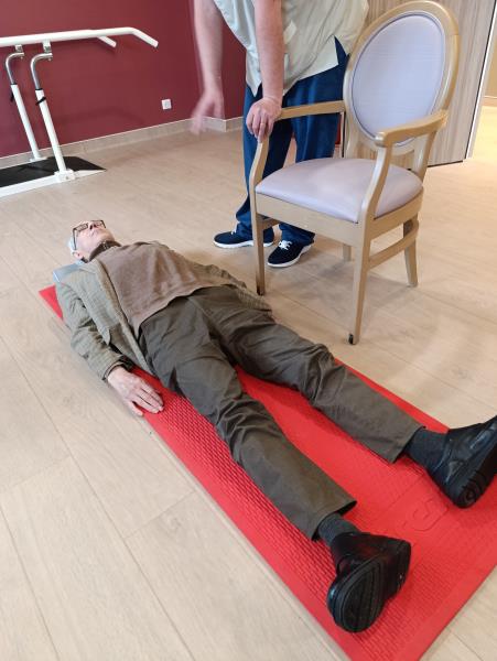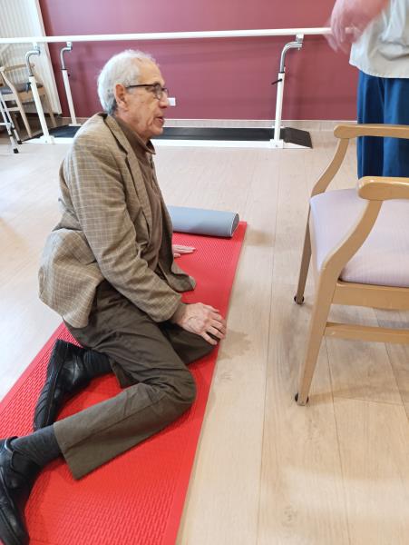 Depuis début janvier, un atelier « relever du sol » est mis en place en binôme par le kinésithérapeute et l'ergothérapeute à la Résidence.