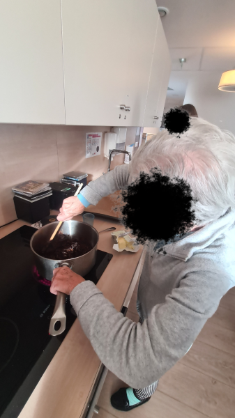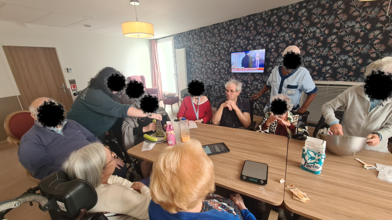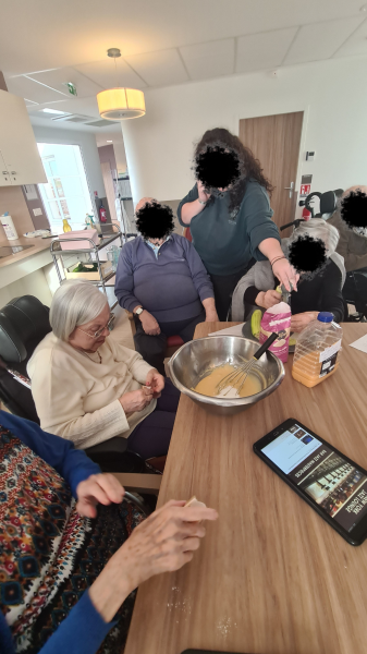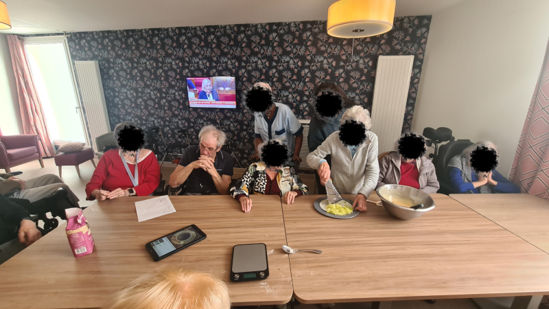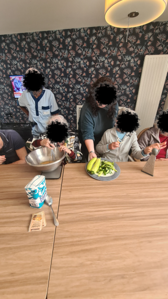 L’atelier pâtisserie de cette semaine a réuni les résidents et l’accueil de jour pour un moment de partage et de convivialité. Ensemble, ils ont réalisé un gâteau au chocolat et à la courgette, une recette aussi surprenante que savoureuse ! Les discussions se sont enchaînées tout au long de la préparation, et chacun a pu savourer le résultat de ce travail collectif : un gâteau moelleux, plein de saveurs et de bonne humeur.