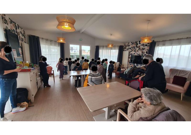 Ce mardi, l’accueil de jour a accueilli la dernière classe de l'école Madeleine Brès du mois pour un bel échange intergénérationnel. Au programme : des activités variées comme un loto convivial et la réalisation d’une fresque hivernale, favorisant le partage et la créativité. Le moment s’est poursuivi autour d’un goûter partagé, puis s’est conclu par le chant de deux chansons d’enfants, pour le plus grand plaisir des résidents, ravis de ces instants chaleureux.