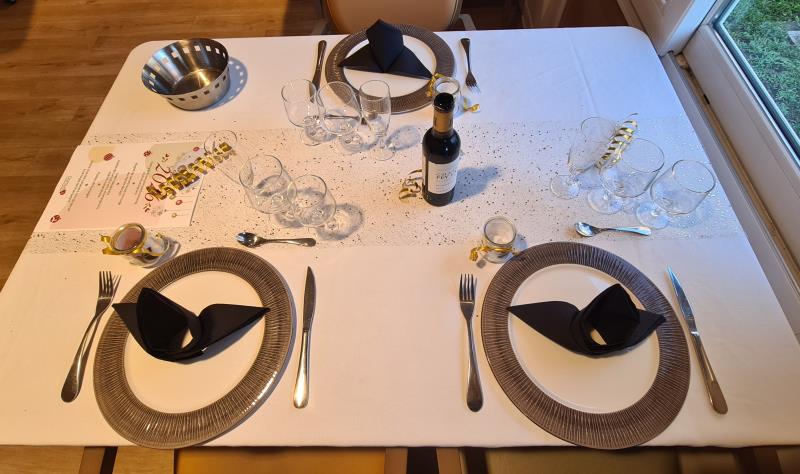 Pour célébrer le 1er janvier, la table s’est parée de noir et de doré, symboles d’élégance et de fête.