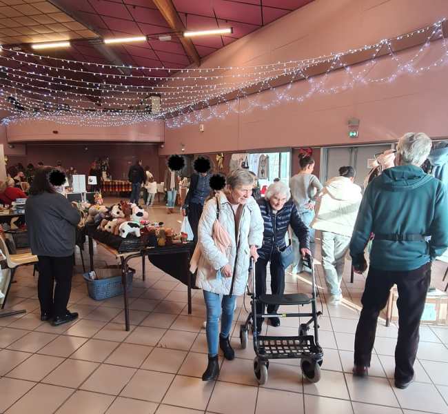 Samedi 20 décembre après-midi, accompagnées de quatre résidentes et avec le soutien d’une famille, nous sommes allés faire un tour au marché de Noël de Parempuyre. Cette sortie a été l’occasion de découvrir de nombreuses créations originales : mosaïques colorées, peluches réalisées au crochet, bijoux artisanaux et bien d’autres trésors faits main. Les échanges, les sourires et l’ambiance festive ont rendu ce moment particulièrement agréable et convivial, apprécié de toutes. 🎄✨