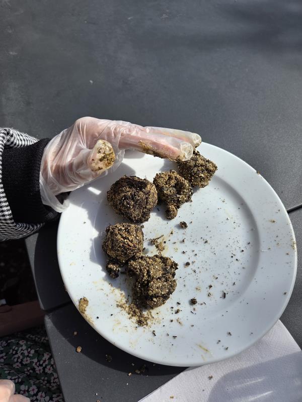 Pour clôturer cette matinée, les seniors ont fabriqué leurs propres bombes de graines à partir d’humus, d’argile et de graines de fleurs, qu’ils ont ensuite lancées dans le jardin, participant ainsi à un geste simple mais symbolique pour la biodiversité.