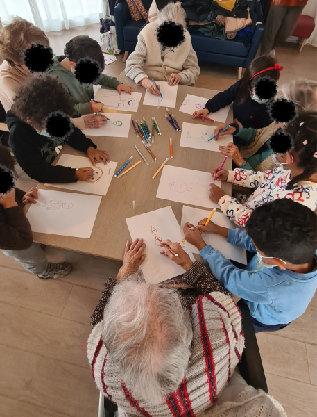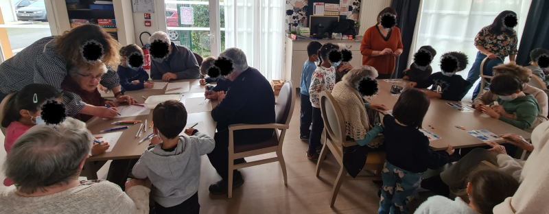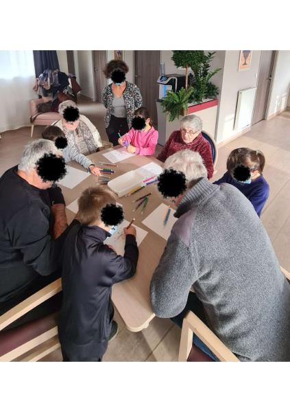 La classe de grande section de l’école Madeleine Brès de Parempuyre est venue partager un beau moment d’échange intergénérationnel avec les résidents de l’accueil de jour et certains résidents de l’EHPAD aujourd'hui. Ensemble, petits et grands ont participé à différentes activités, comme un concours de dessins et un loto imagé autour du thème de l’hiver. Ces instants ont été riches en sourires, en échanges et en complicité. Avant de se quitter, tous ont partagé un bout de galette des rois et chanté une petite chanson, clôturant cette rencontre chaleureuse.