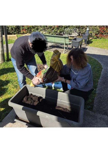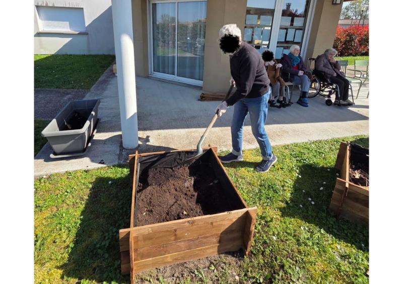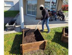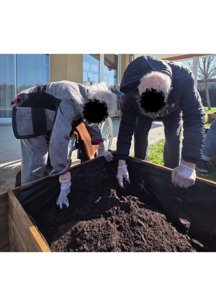 La semaine dernière, lors d’un après-midi ensoleillé à l’accueil de jour, résidents de l’accueil et certains résidents de l’EHPAD se sont retrouvés au potager dans une ambiance conviviale. Ensemble, ils ont participé à la finalisation du remplissage des bacs potagers, préparant ainsi la terre pour les plantations prévues ce samedi 28 mars après-midi. Chacun a mis la main à la pâte, favorisant les échanges, l’entraide et le plaisir de jardiner collectivement. Nous avons également profité de ce beau temps pour partager la collation en extérieur, au soleil, un moment particulièrement apprécié par tous.