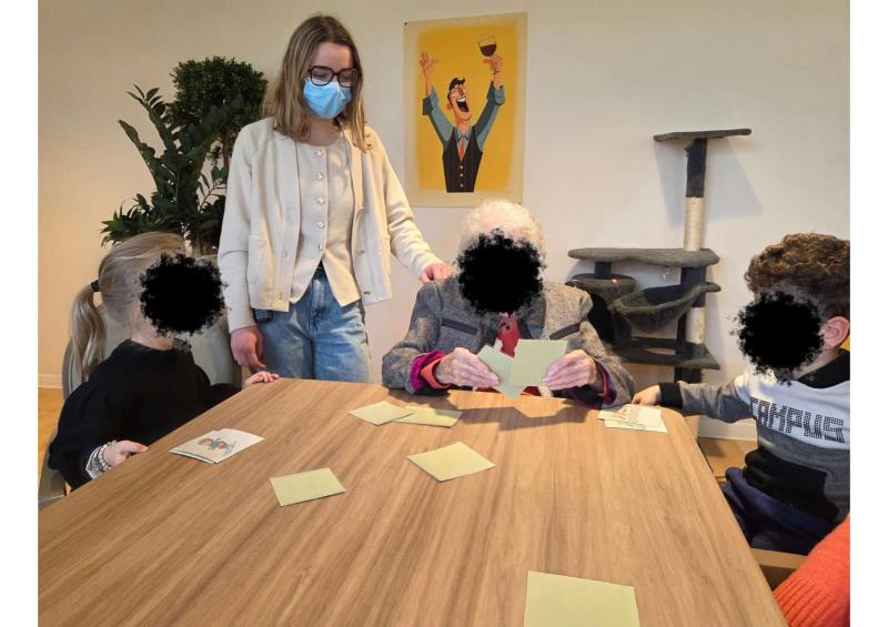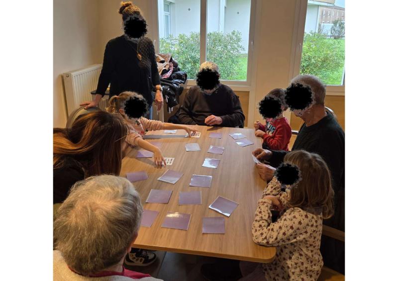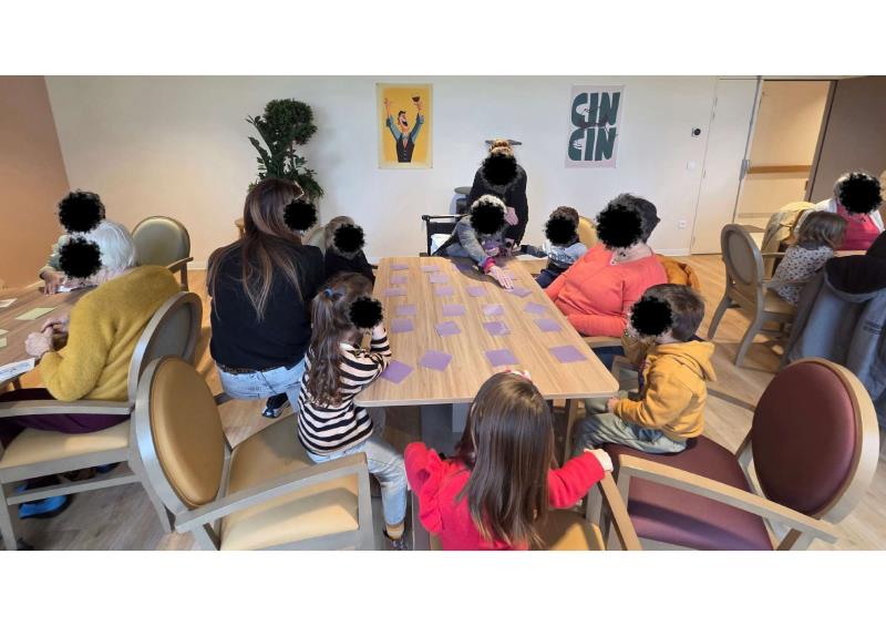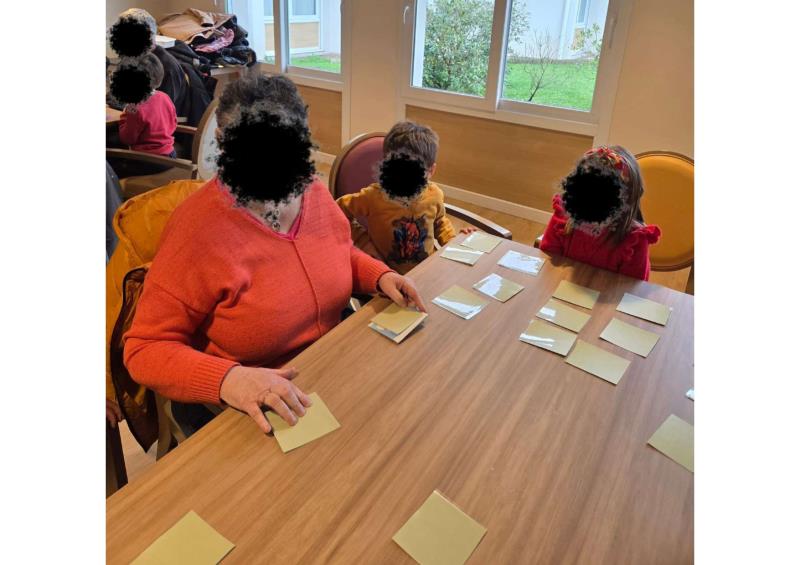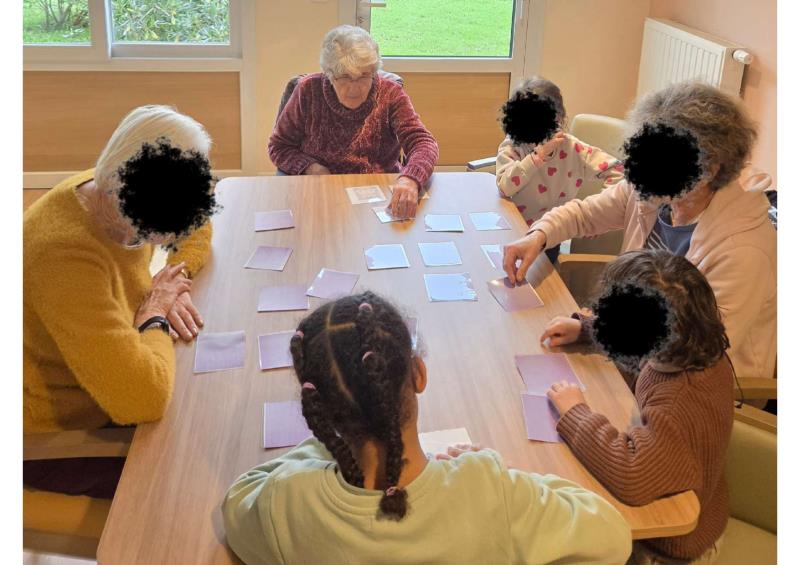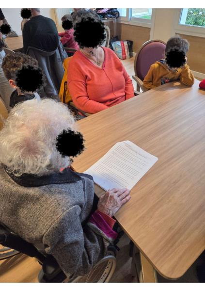 Les enfants avaient préparé avec soin des jeux de memory qu’ils ont présentés et animés avec enthousiasme. L’un des temps forts de la rencontre fut l’histoire racontée par notre doyenne, qui célébrera prochainement ses 102 ans : un moment suspendu, riche en souvenirs et en émotion.