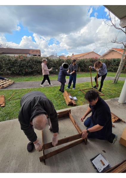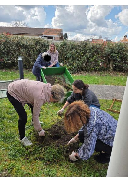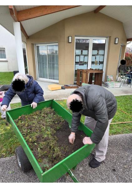 Lors de cet après-midi jardinage à l’accueil de jour, certains résidents ont participé à la préparation de l’emplacement des futurs bacs potagers. Cette activité s’inscrit dans le projet de plantation qui se réalisera le 28 mars prochain avec des étudiants paysagistes.