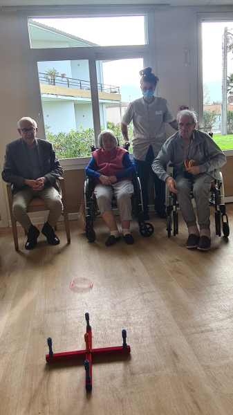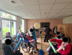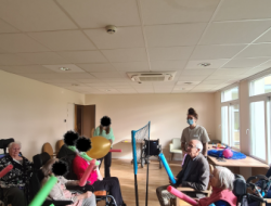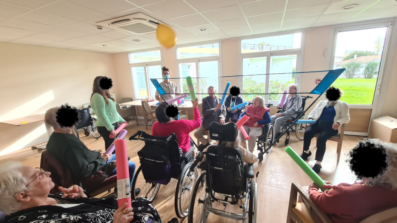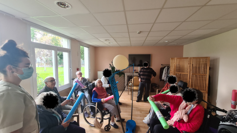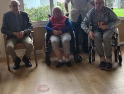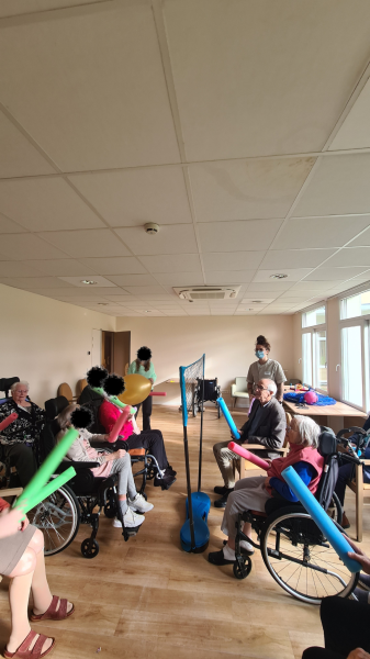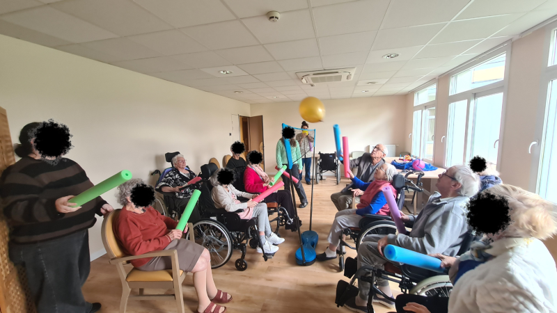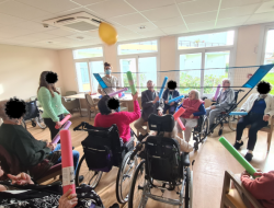 Mercredi matin, notre séance de gym douce s’est déroulée dans une très belle ambiance. Le groupe de résidents, accompagné des participants de l’accueil de jour, a profité d’exercices ludiques autour du jeu du cerceau et d’un volley léger avec frites. Entre rires, mouvements en douceur et entraide, la matinée s’est déroulée dans la convivialité et la bonne humeur.