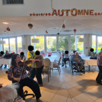 Publiée le 20/11/2025Mardi 18 novembre, Cécile a animé une belle séance de musicothérapie réunissant un grand groupe de résidents ainsi que les participants de l’accueil de jour. Chants, danses et sourires étaient au rendez-vous, créant un moment chaleureux, rythmé et plein d’énergie positive. Un temps de partage q [...] Lire la suite