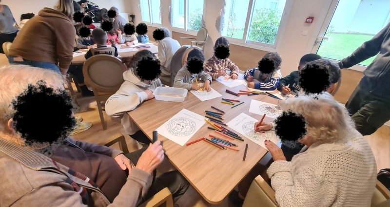 La semaine dernière, un bel échange intergénérationnel a eu lieu avec la classe de Grande Section de l’école Madeleine Brès. Les résidents et les participants de l’accueil de jour étaient réunis pour partager un moment chaleureux avec les enfants. Entre rires, discussions et petites activités, chacun a pu profiter pleinement de cet instant de rencontre. Les résidents ont été ravis de cette parenthèse joyeuse, qui a apporté beaucoup de convivialité et de sourires à tous.