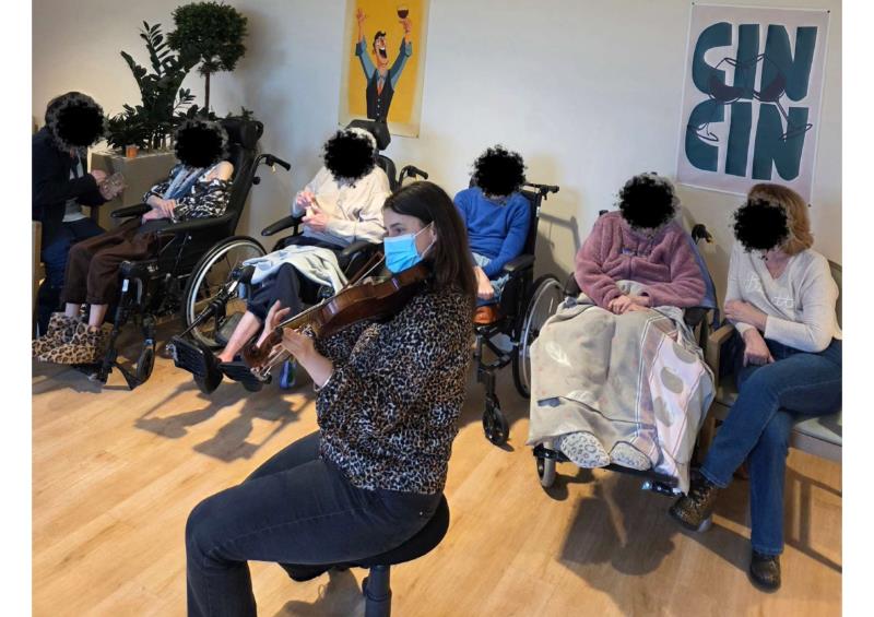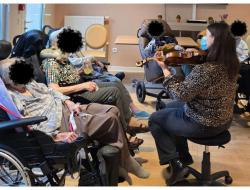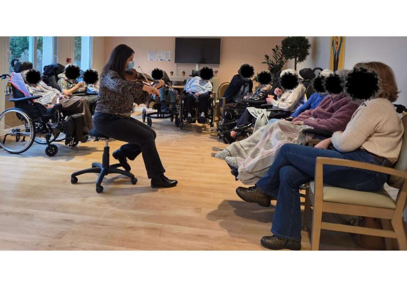 Hier après-midi, Cécile a animé une séance de musicothérapie auprès d’un groupe de grands dépendants. À l’approche de la Saint-Valentin, elle avait choisi un registre musical autour de la thématique de l’amour, proposant des chansons douces et évocatrices. Les résidents ont pu se laisser porter par les mélodies, certains fredonnant quelques paroles, d’autres exprimant leurs émotions par des sourires ou des regards apaisés. Ce moment musical a offert une parenthèse de douceur et de réconfort, créant un véritable instant d’apaisement et de partage au sein du groupe.