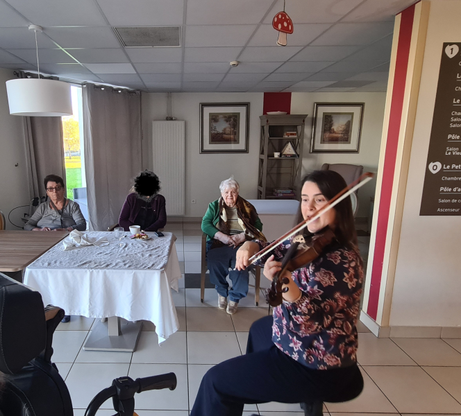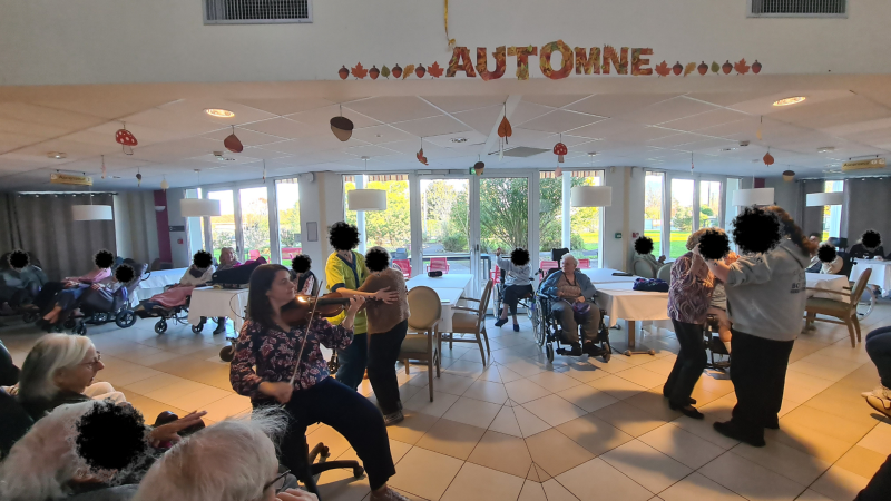 Mardi 18 novembre, Cécile a animé une belle séance de musicothérapie réunissant un grand groupe de résidents ainsi que les participants de l’accueil de jour. Chants, danses et sourires étaient au rendez-vous, créant un moment chaleureux, rythmé et plein d’énergie positive. Un temps de partage qui a rassemblé tout le monde autour de la musique.
